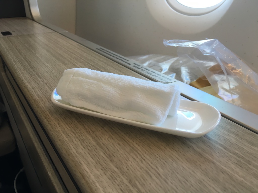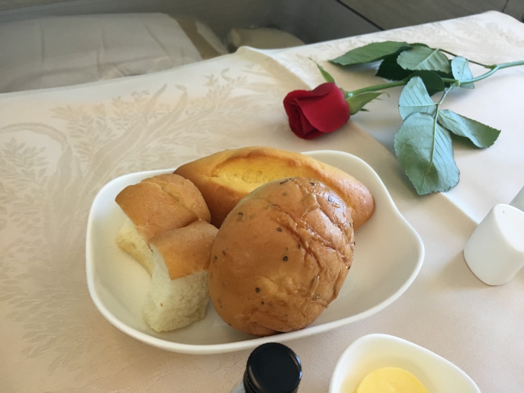 Wenig später wurde mein Tisch liebevoll eingedeckt und alles mit viel Liebe zum Detail auf meinem Tisch drapiert. Besonders die Rose, welche mich den gesamten Flug über begleiten sollte, war ein wirklich netter Zug.