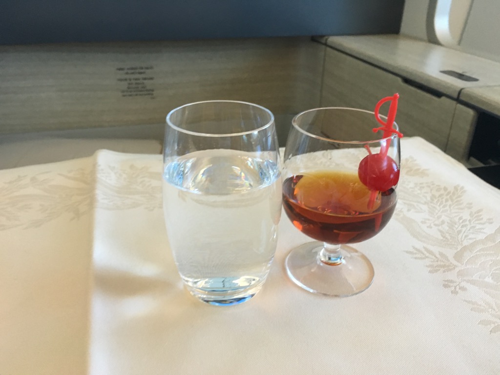 Mit der Tischdecke wurde mir auch mein Aperitif geliefert. Ich wollte umbedingt einmal den Cocktail Service von Asiana testen, weshalb ich einen Manhattan bestellt habe. Hierzu wurden auch heiße Tücher gereicht.