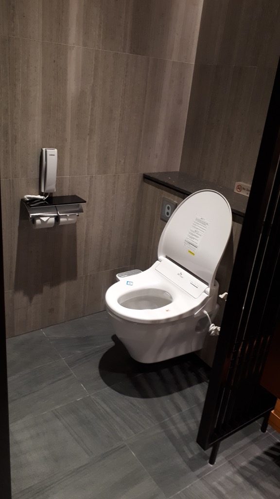 Kommen wir zu den Duschen. Ein bisschen warm wäre ja cool, aber eiskalt war nicht mein Plan! Dabei habe ich das Wasser wirklich lange laufen lassen. In den alten Locations kam dann irgendwann das warme Wasser. Die Toiletten sind inzwischen komplett digitalisiert, selbst der Spülknopf. Und ja, richtig, die gesamte verspielte Technik auf dem WC inkl. Bidet ist natürlich ausschließlich auf koreanisch beschriftet. Alles ist sehr winzig und eng, an LH Ausmaße mit Badewanne und Quietsche-Entchen ist nicht zu denken.