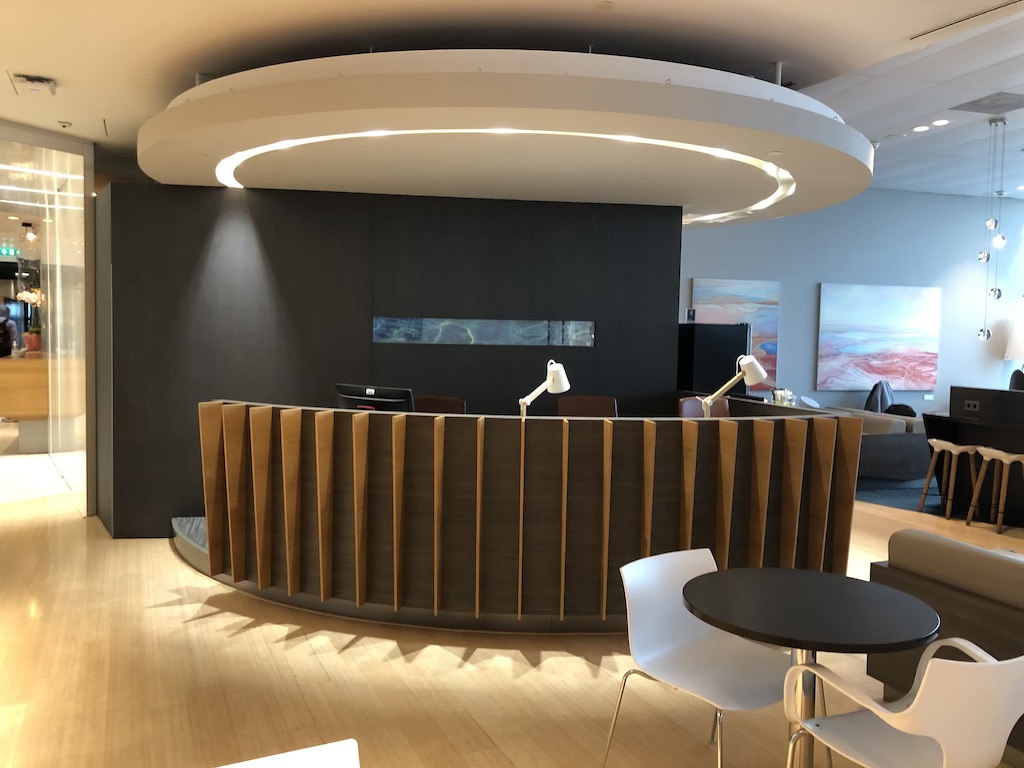 In der Lounge selbst war wenig los, die Besucher konnten sich gut verteilen und die Ruhe genießen. Verschiedene Sitzmöglichkeiten der unterschiedlichsten Art eignen sich zum Arbeiten, Entspannen oder zum Essen. Kleinere Raumteiler erhöhen die Privatsphäre.