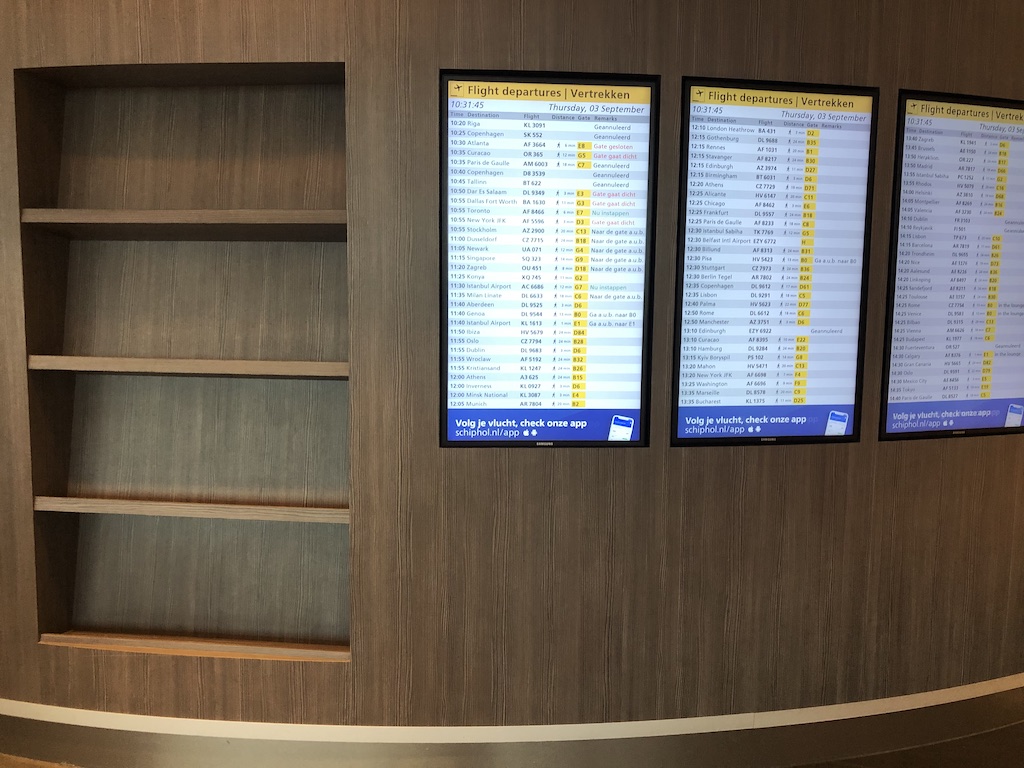 Es gibt zahlreiche Lounges am Flughafen Schiphol, diese sind alle nummeriert und gut ausgeschildert. Zwei Etagen über den Gates wurde es noch ruhiger als es an diesem Morgen ohnehin schon war. Man kommt über Treppen oder mit kleinen Aufzügen bis zum Eingang der Lounge.