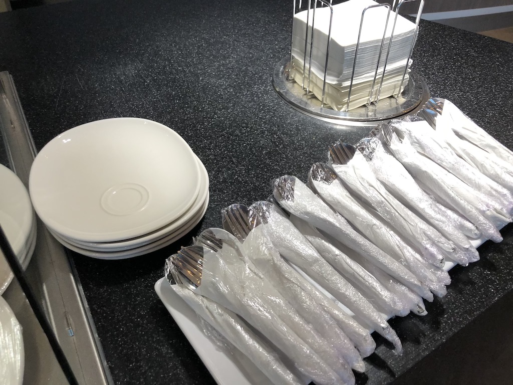 Das Angebot ähnelt dem der Lounge bei Schengen. Es gab morgens keine warmen Optionen, Croissants und Obst waren portioniert und abgepackt. Auch Aufschnitt und Käse waren scheibenweise in Folie gewickelt.