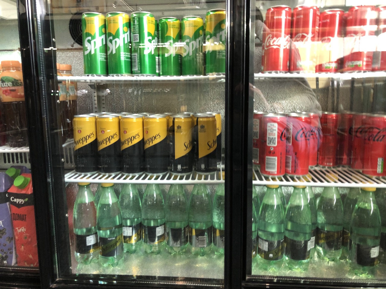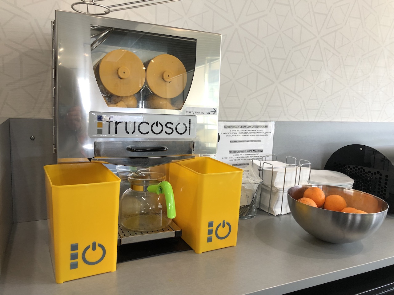 Neben diversen Softdrinks kann man sich Orangensaft frisch pressen.