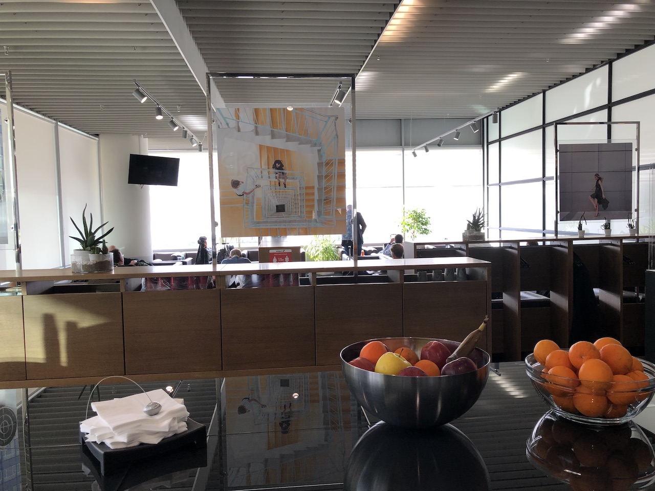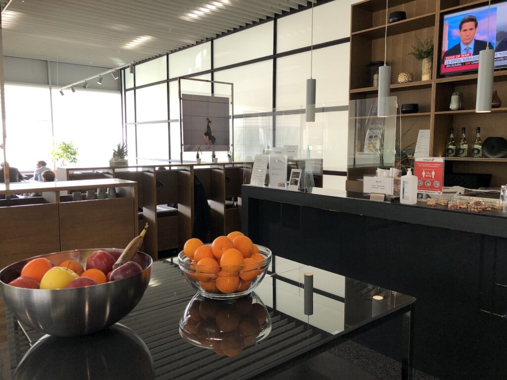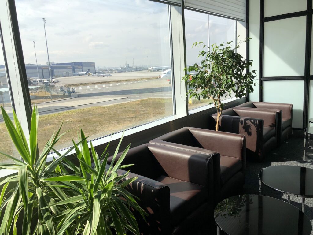 Die Lounge ist relativ klein und liegt direkt an einer Fensterfront. Dadurch ist diese zur Tageszeit relativ hell, man bekommt zum Teil auch Einblicke auf das Vorfeld.