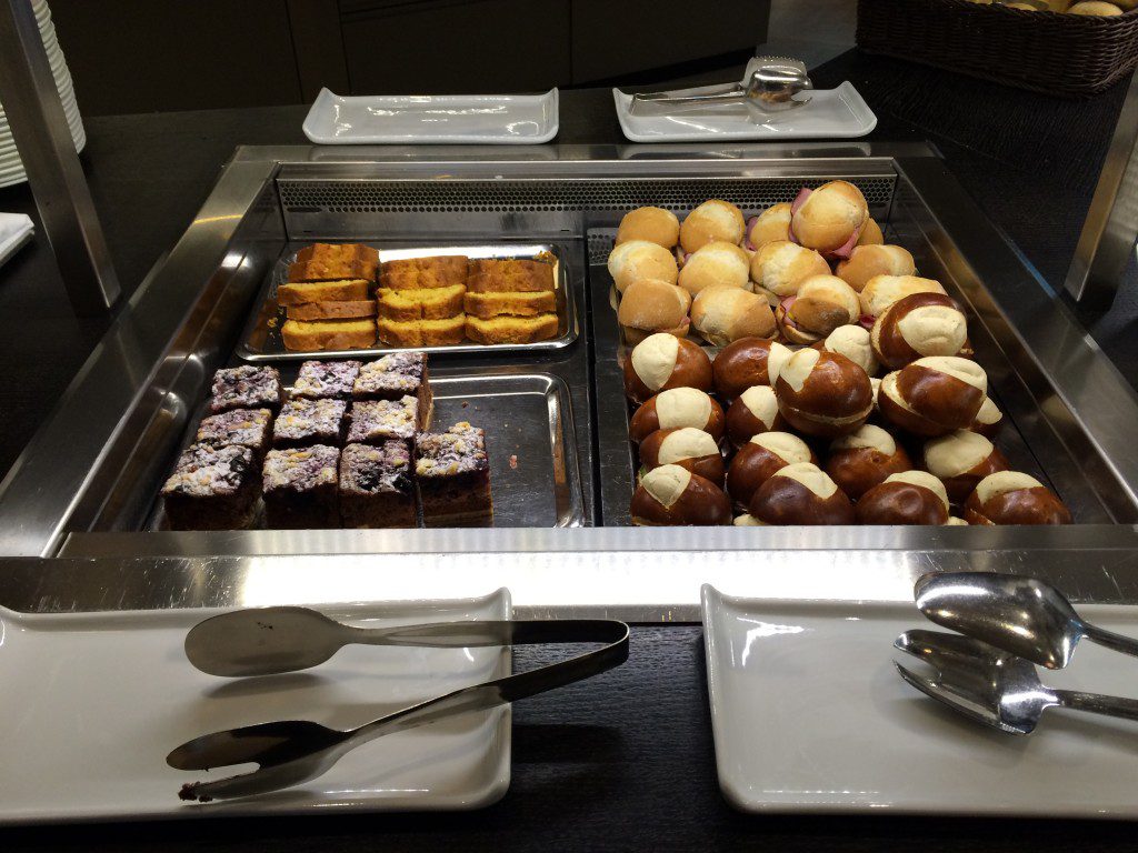 Das Buffet war während meinem Besuch mit belegten Brötchen, Kuchen und Suppe bestückt. Leider werden warme Speisen nur zu den Hauptessenszeiten angeboten, was für eine Airport Lounge ein wenig suboptimal ist.