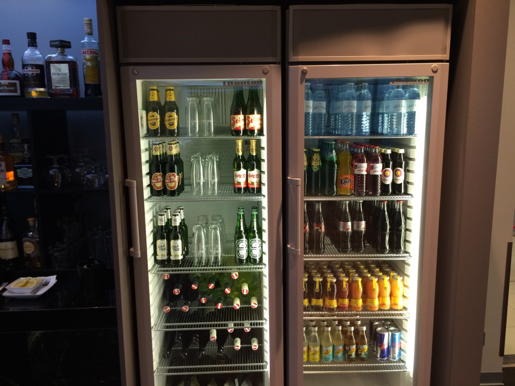 Neben diversen Soft-Drinks, Säften und Bieren gibt es in der Austrian Airlines HON Circle Lounge in Wien auch eine breite Auswahl an Spirituosen und Weinen.