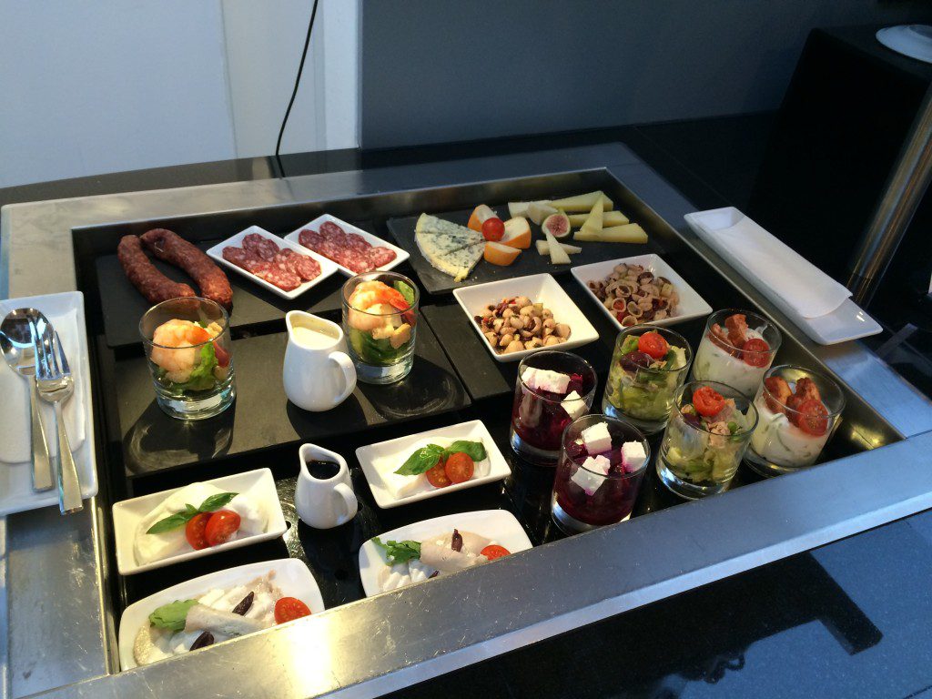 Wie man es sich bei Austrian Airlines denken kann, wird das Lounge Catering von DO&Co durchgeführt. Ein großer Teil der Lounge wird vom Buffet eingenommen. Wie man es von DO&Co kennt sind die Speisen österreichisch-mediterran geprägt.