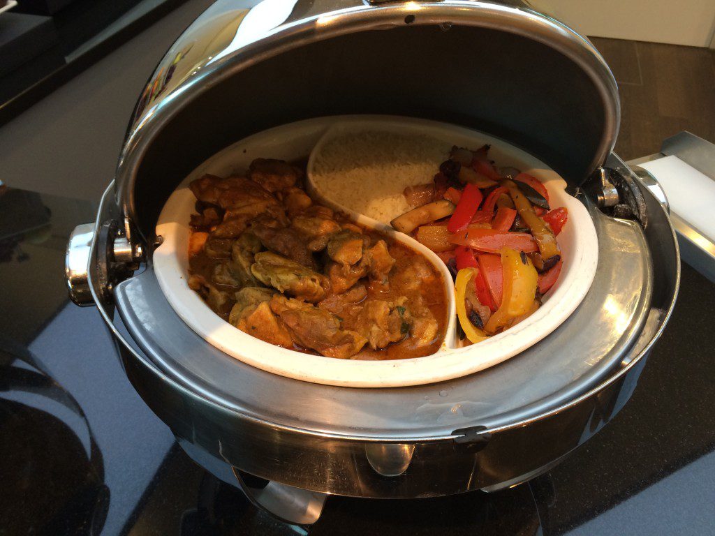 Neben zwei Suppen werden auch immer zwei warme Hauptgerichte in der Austrian Airlines HON Circle Lounge angeboten. Ein a la carte Menü gibt es leider nicht.