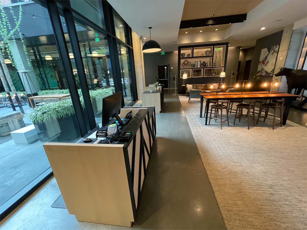 Einen klassischen Front Desk gibt es nicht. Stattdessen gibt es zwei Tresen mit sichtbaren Computerbildschirmen, die als Rezeption dienen. Sie sind jedoch nicht durchgängig besetzt, so dass Gäste, die zum ersten Mal ins Hotel einchecken, es nicht allzu leicht haben.