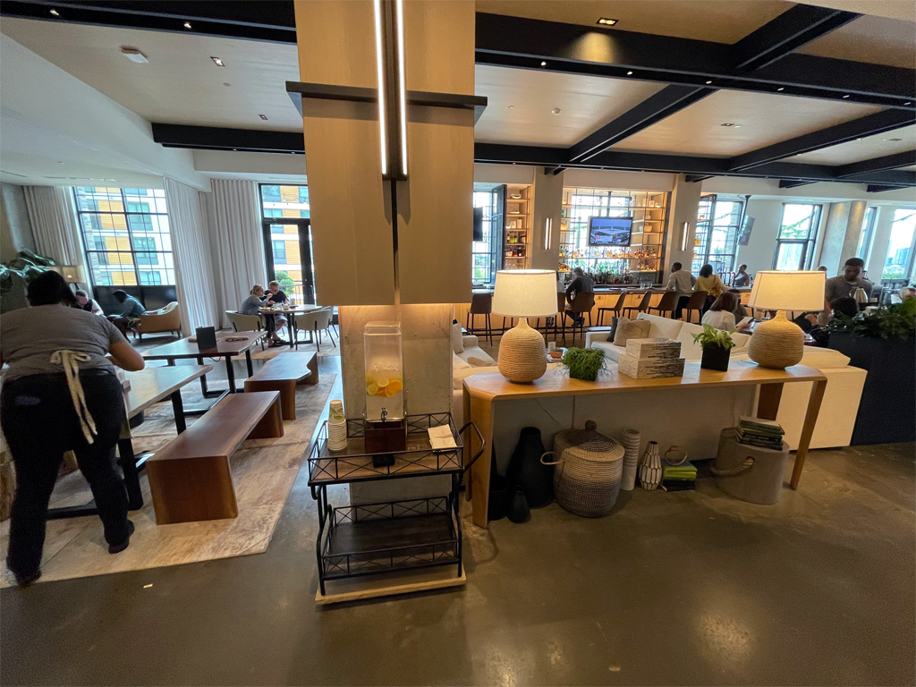 Das Restaurant/die Bar/die Lobby ist der zentrale „Spot“ im Hotel. Jeder, der sich im Hotel aufhält, muss hier durch und wird damit Teil der Szenerie. Dabei gibt es zwischen Restaurant/Bar/Lobby keine Grenzen. Jedes Sofa kann genutzt werden, um einfach zu entspannen, eine Mahlzeit zu genießen oder um an einem Getränk zu schlürfen. Neben der Alles-in-allem-Lobby bietet das Hotel noch ein kostenpflichtiges Parkhaus (35 USD Self Parking) mit Valet Service an. Im Hotel befindet sich zudem ein Fitnesscenter.