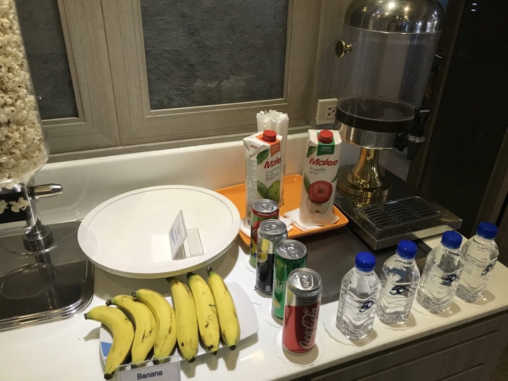 In der Lounge gab es ein kleines Buffet mit allerlei Snacks. Die Auswahl war hier für die Größe beachtlich. Ebenso wurde uns direkt nachdem wir Platz genommen hatten eine Speisekarte gebracht, aus der wir weitere Speisen und Getränke bestellen konnten. Da das Frühstück im Hotel uns nicht ansprach, hatten wir Hunger und haben uns etwas bestellt. Die Qualität und die Menge der Speisen und Getränkewar gut, wenn auch nicht überragend.