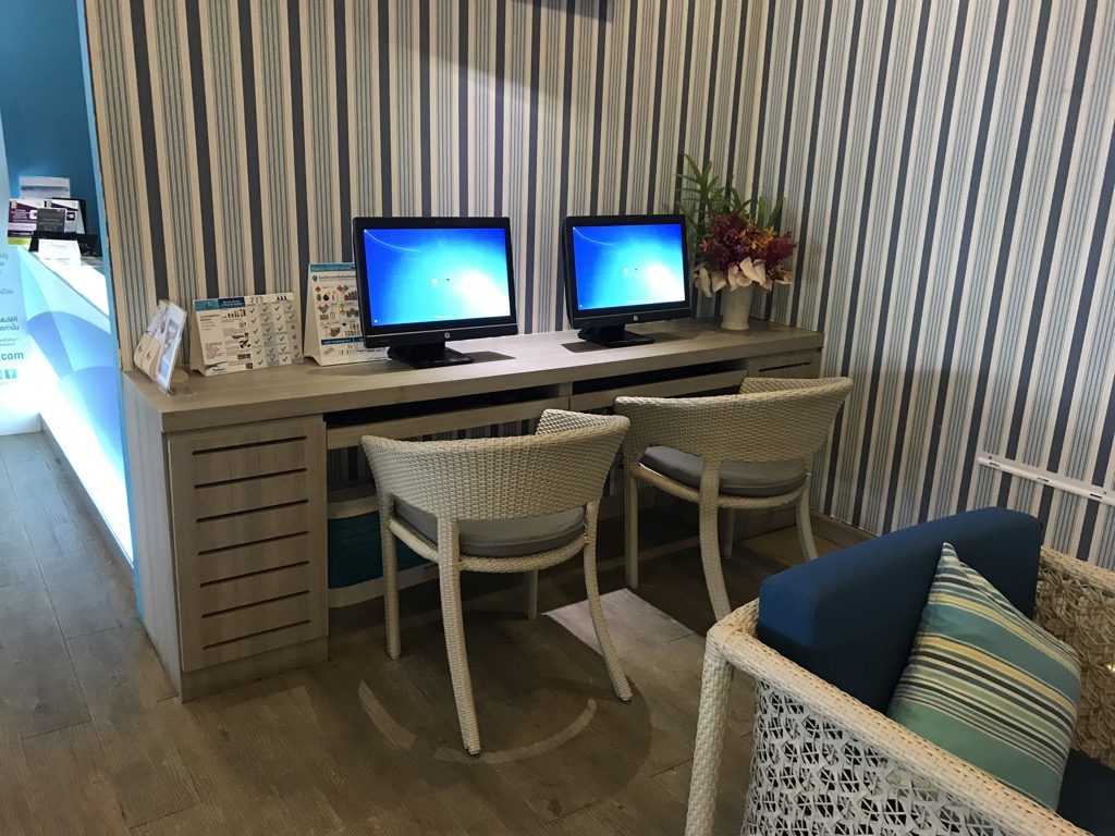 Ganz erstaunt war ich über die zwei Computer, die in der Lounge standen. Diese dienten als Business Center. Damit haben wir in dieser Lounge beide nicht gerechnet. Die Lounge, wie auch die Gates außerhalb der Lounges verfügten über freies Wifi, das man nach dem Scannen der Bordkarte mit einem persönlichen Code nutzen konnte.