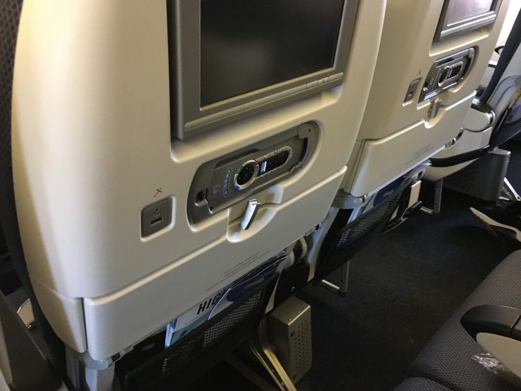 An jedem Sitz befand sich auch ein USB Anschluss und jeweils unter drei Sitzen, zwei Steckdosen, so dass man problemlos seine elektronischen Geräte landen konnte.