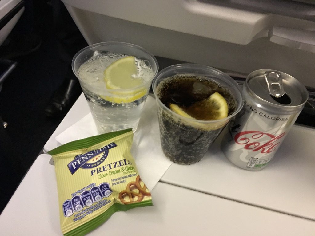 Direkt nach dem Start wurde sehr zügig mit dem Service begonnen. Zu Beginn gab es einen Aperitif. Anders als auf Kurzstrecken, bietet British Airways auf der Langstrecke noch einen vollständigen Getränkeservice an. Dabei sind alle Getränke, inkl. Bier, Wein und Spirituosen kostenlos. Ich habe mich mit einem Wasser und einer Cola Zero begnügt.