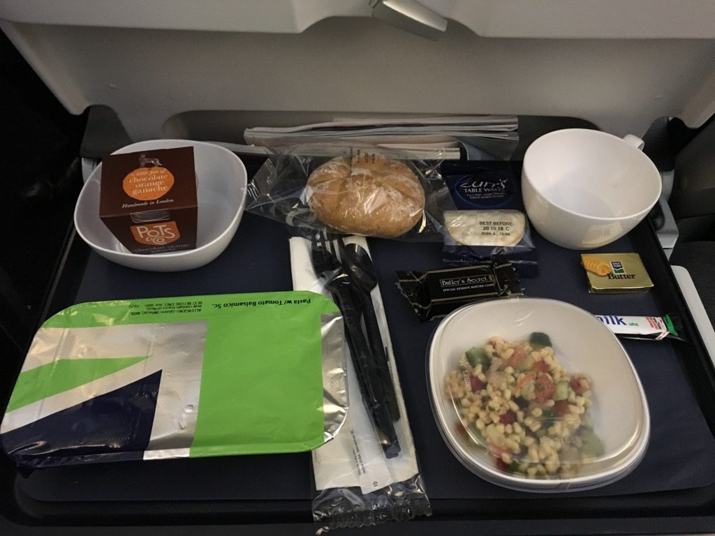 Was mich am Essensservice in der British Airways Economy Class am meisten überrascht hat, war das riesige Tablett, auf welchem man das Essen serviert. Dieses war sicher doppelt so groß, wie das bei Lufthansa, allerdings befand sich bei British Airways nicht wirklich mehr auf dem Tablett.