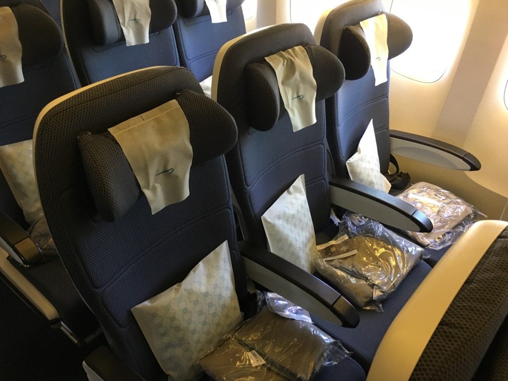 Auf allen Sitzen befand sich bereits eine Decke und ein Kissen. Beide waren für eine Economy Class von durchaus guter Qualität.