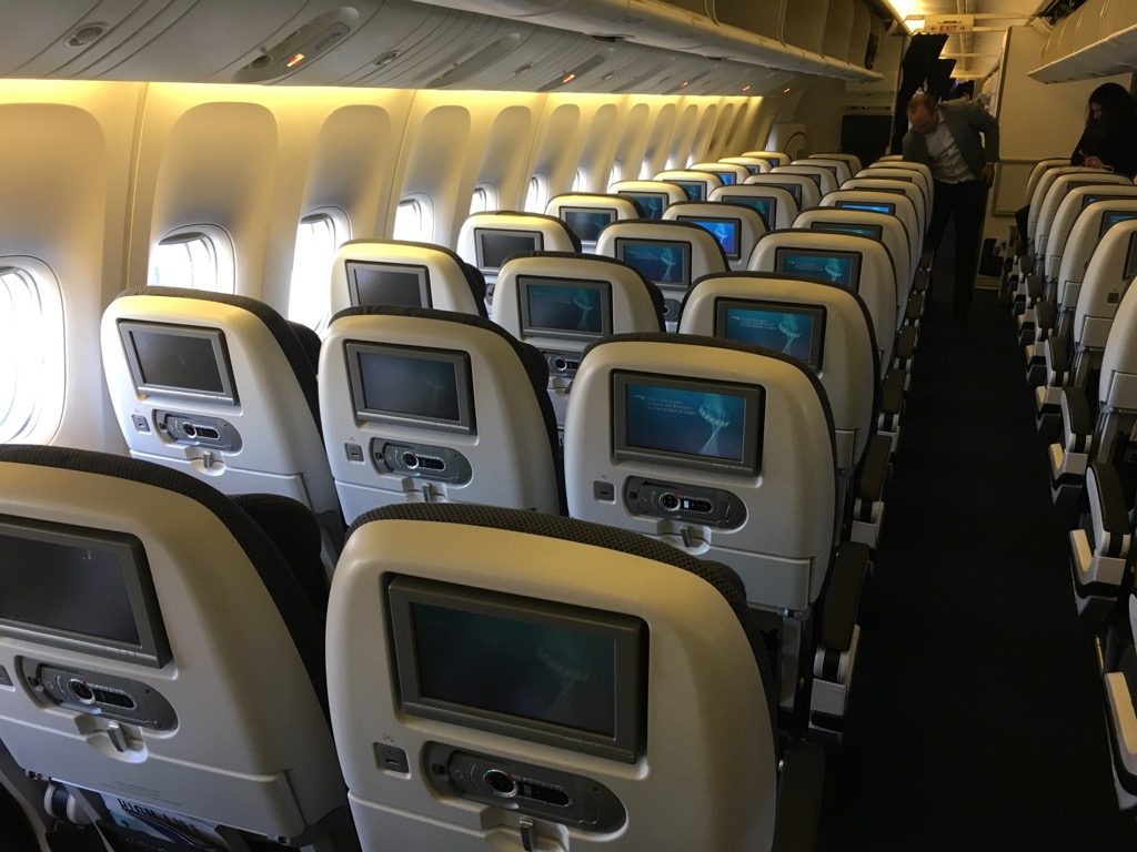 Die Kabine machte auf mich beim Betreten einen sehr aufgeräumten und durchaus modernen Eindruck, auch wenn man hier und da gesehen hat, dass die Boeing 777 schon fast 10 Jahre alt war.