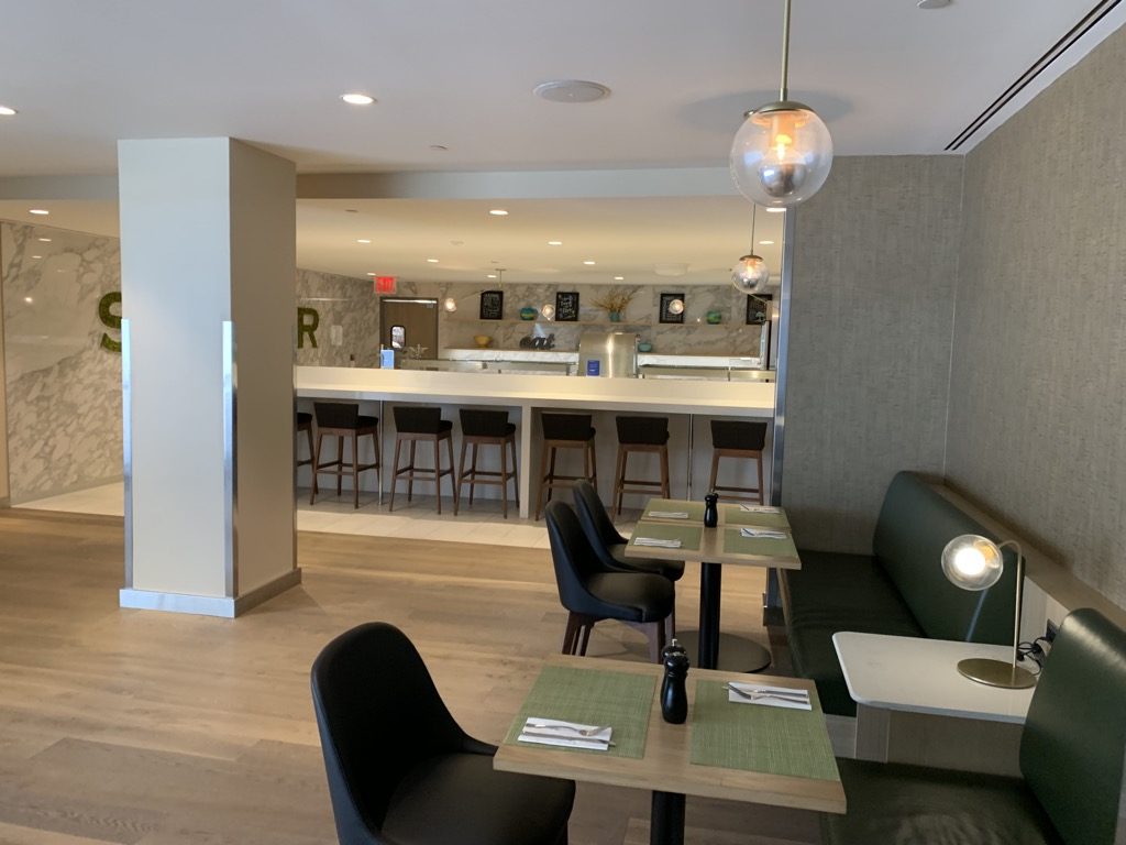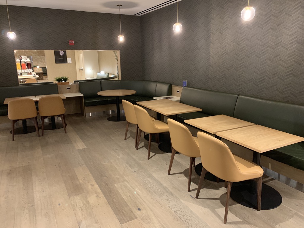 Das Pre Flight Dining ist im Grunde ein Buffet Restaurant, mit mehreren warmen und kalten Speisen. Leider öffnet dieses Angebot erst um 16 Uhr am Nachmittag, sodass man es bei den ersten Flügen welche New York verlassen, nicht mehr nutzen kann.  Daher konnte ich nur Bilder vom Restaurant selbst, aber nicht von den Speisen machen.