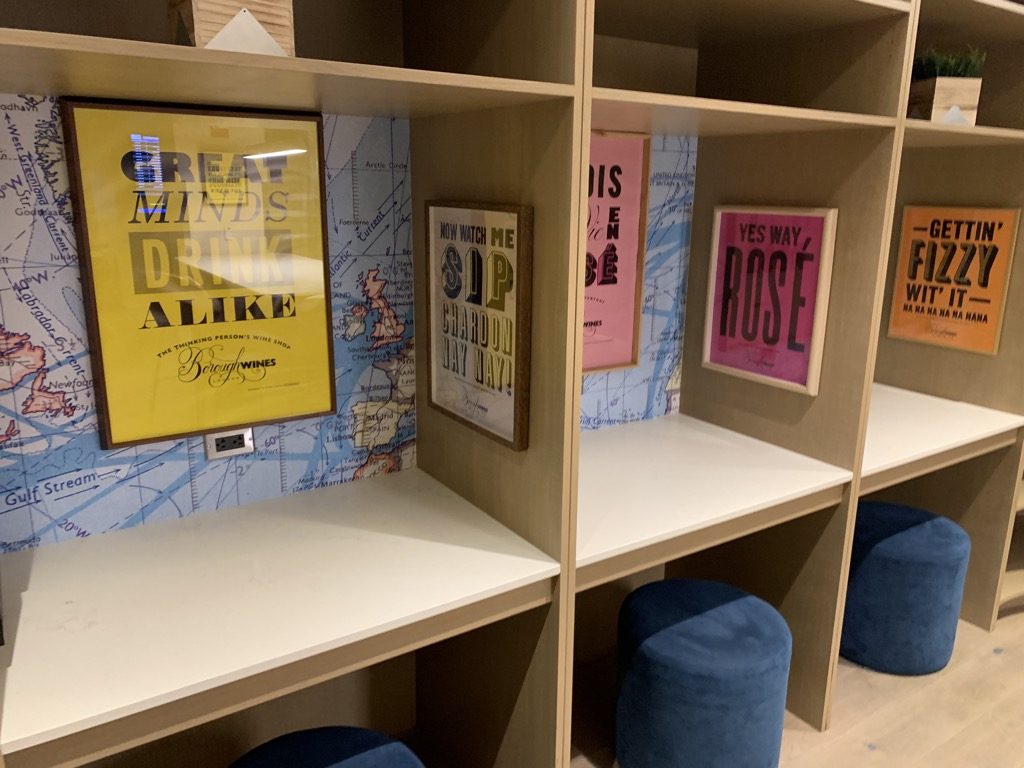 Lustigerweise befindet sich in genau diesem Bereich auch ein Weinregal mit einem Wein-Spender. Ob man das jetzt unpassend oder extrem passend in einem Arbeitsbereich findet, ist jedem selbst überlassen. Ich persönlich fand es vor allem lustig, auch wenn ich mir kein Glas Wein gegönnt habe.
