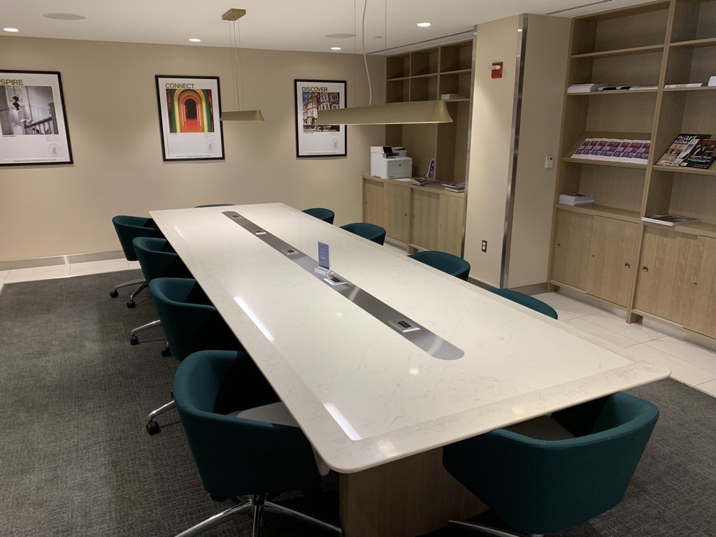 Auch einen kleinen Konferenzraum gibt es direkt nebenan, wobei dieser wohl auch eher zum Arbeiten genutzt wird als für geschlossene Meetings. In diesem Raum befindet sich auch der Drucker der Lounge und ein Regal mit vielen Magazinen.
