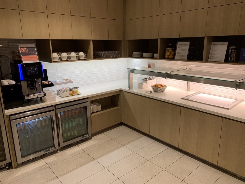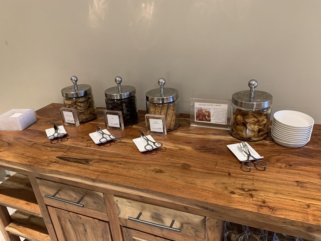 Nachdem die British Airways First Class Lounge auch das Pre Flight Dining bietet, ist das Angebot an Speisen in der Lounge selbst sehr bescheiden. Grundsätzlich macht dies auch durchaus Sinn, wenn man aber bedenkt, dass ein Emerald in der Economy oder Premium Economy Class keinen Zugang zum Pre Flight Dinner hat.
