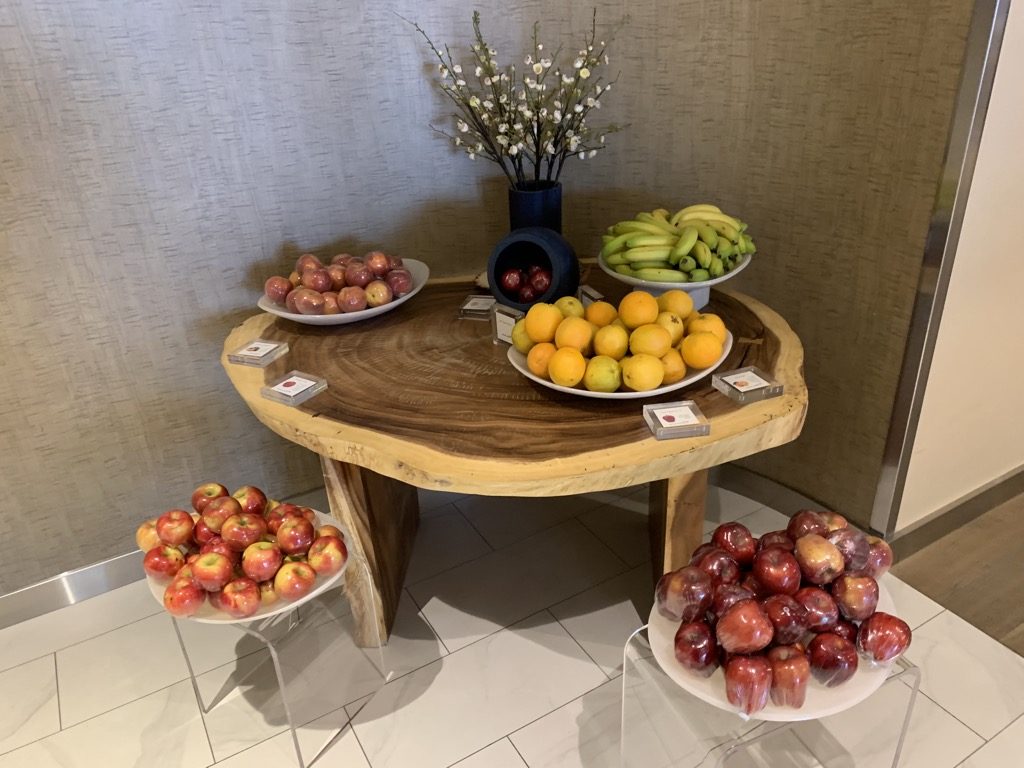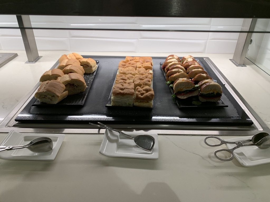 Bei meinem Besuch gab es lediglich einige Sandwiches, Obst und abgepackte Snacks auf dem Buffet in der Lounge, was ich für eine „First Class Lounge“ mehr als mager finde.