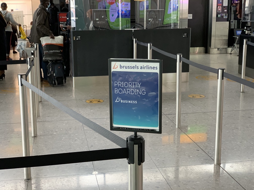 Brussels Airlines fliegt in London Heathrow wie alle Airlines der Lufthansa Gruppe aus dem Terminal 2 ab und man benutzt hier auch mehrere gemeinsamen Check-In Schalter für Lufthansa, Swiss, Austrian Airlines und Brussels Airlines.