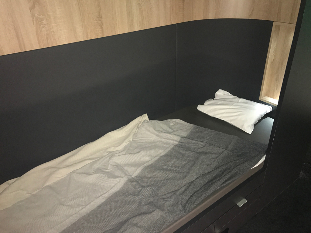 Zur Erholung nach einem langen Flug oder bei einer besonders langen Transitzeit bietet Brussels Airlines hier auch vier abgedunkelte Schlafplätze an:
