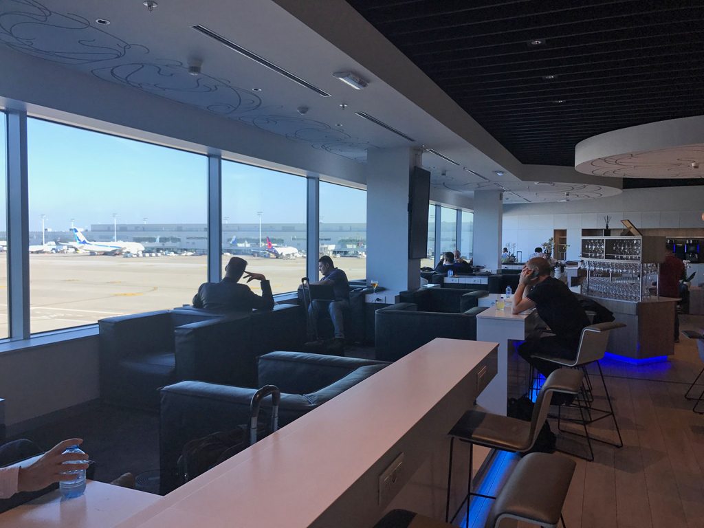 Direkt auffällig ist, dass die Lounge sehr lichtdurchflutet ist, da sich auf der einen Seite ein direkter Vorfeldblick bietet. Hier gibt es, nah am Eingang, auch einen exklusiven Bereich für HON-Statusinhaber, der mit einigen Sesseln ausgestattet ist und vom übrigen Bereich der Lounge etwas getrennt ist: