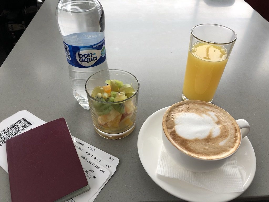 Es gab Softdrinks und Säfte, Kaffeespezialitäten wie Cappuccino wurden von Hand zubereitet und schmeckten hervorragend! Ein toller Service am Morgen. Hinter der Bar konnte ich einige typische Alkoholika erkennen, dafür war ich jedoch nicht in Stimmung. Auf Anfrage wurde mir gesagt, dass es weder Champagner noch Sekt gibt, dafür aber jeweils ein Rot- und Weißwein ausgeschenkt werden.