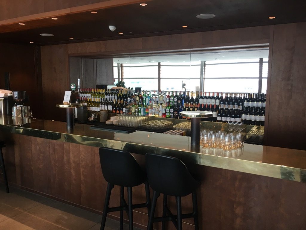 Anders als in der First Class Lounge, gibt es in der Cathay Pacific Business Class Lounge in London Heathrow eine Bar, an welcher man eine große Auswahl an alkoholischen und nicht alkoholischen Getränke von einem Barkeeper ausgeschenkt bekommt. Am Buffet gibt es allerdings auch einen Kühlschrank mit alkoholfreien Getränken zur Selbstbedienung.