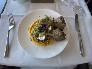 Das eigentliche Essen umfasste dann fünf Gänge. Die Seiten des Menüs habe ich abfotografiert. Geschmacklich waren die chinesischen Optionen deutlich geschmacksintensiver als die deutsch/europäischen.