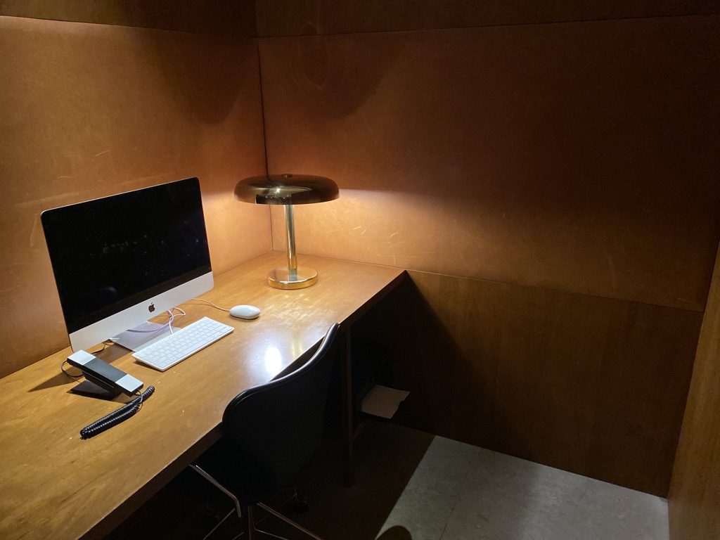 Neben ausgelegten internationalen Magazinen und Zeitungen sowie einem großzügigen Sitzbereich mit offener Bar, welcher ebenfalls recht voll, aber deutlich ruhiger war, verfügt die Lounge auch über Workstations. Im Gegensatz zur Lounge „The Wing“, sind die Workstations hier in kleinen Separees eingerichtet und bieten etwas mehr Privatsphäre. Dies würden wir zum Arbeiten bevorzugen.