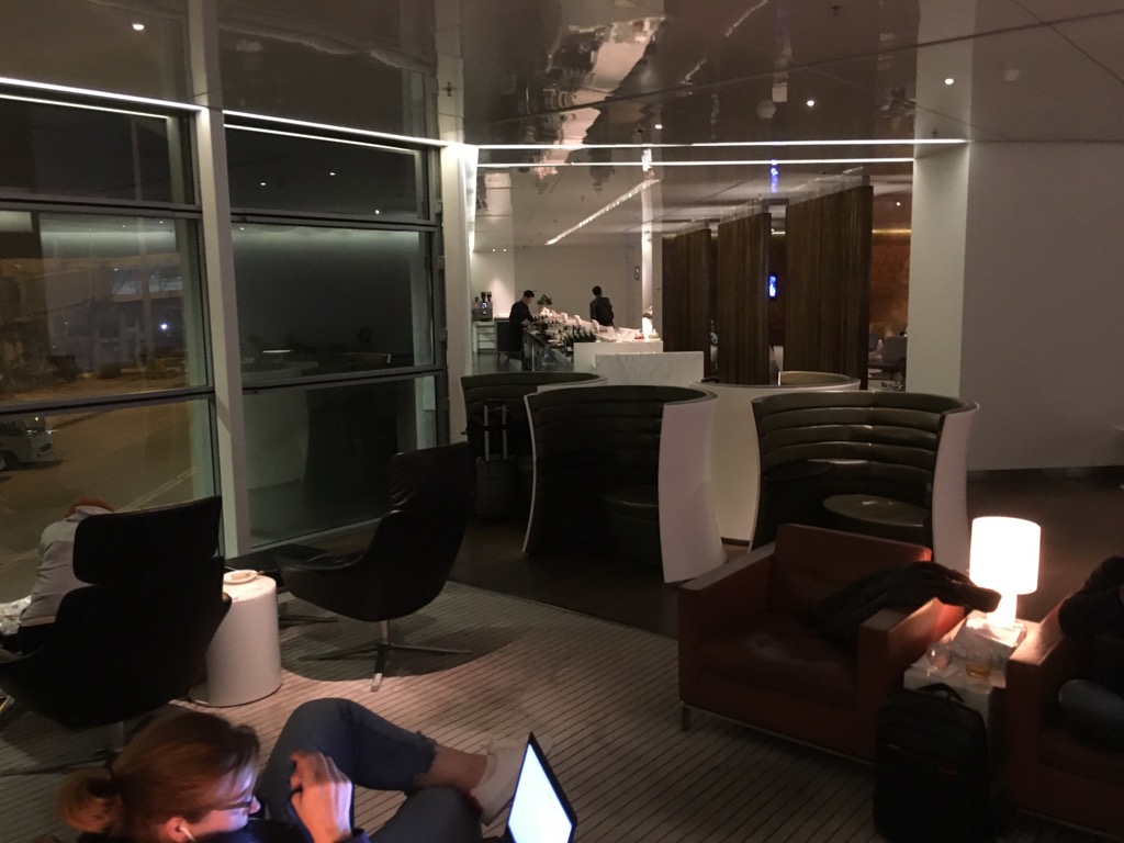 Wenn man in die andere Loungeseite wechseln möchte, muss man erneut am Front Desk vorbeilaufen. Die von hier aus rechte Seite ist zwar etwas kleiner, war bei meinem Besuch allerdings auch deutlich leerer und daher für mich angenehmer.