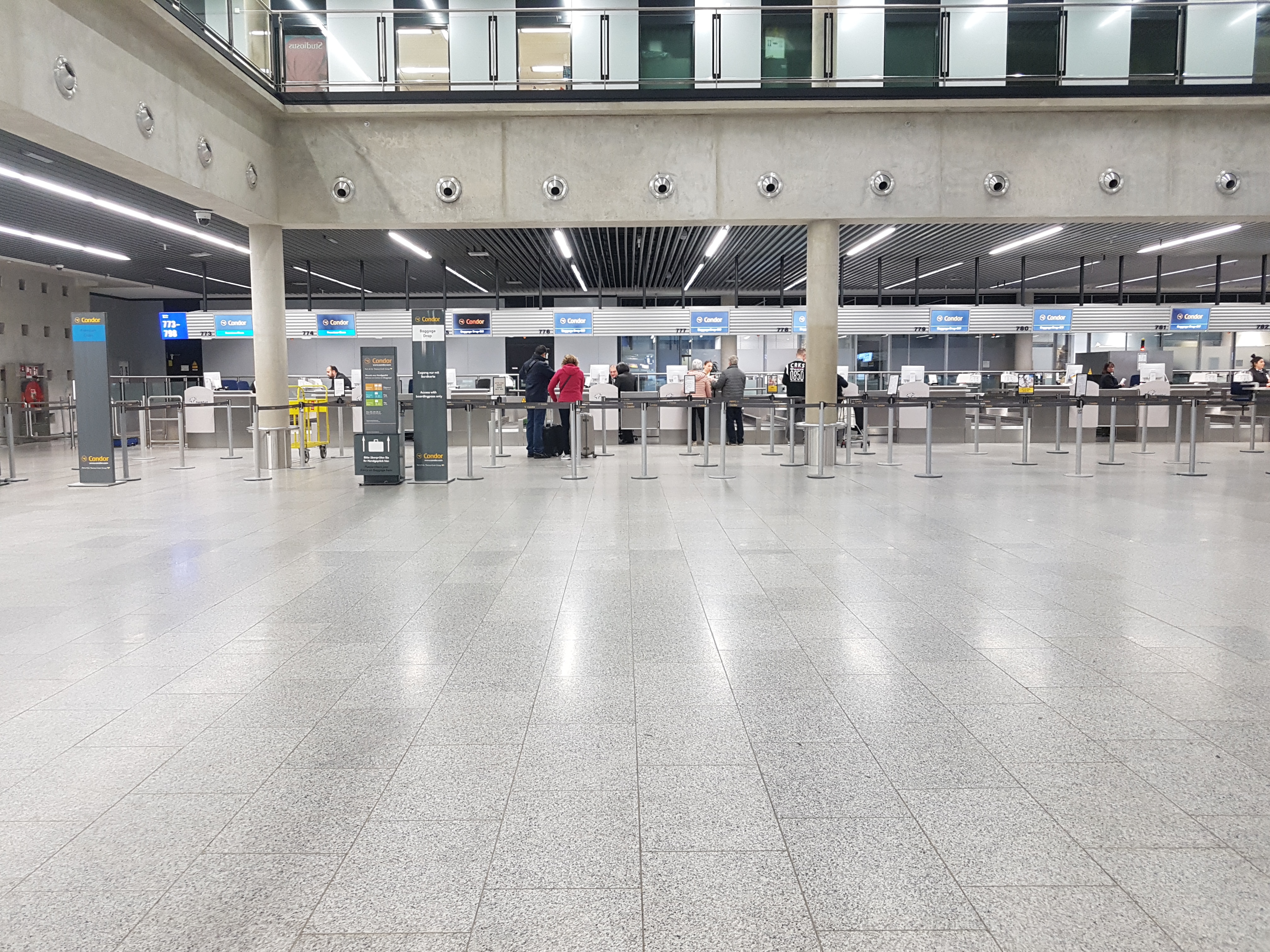 Die Check-In Schalter der Condor befinden sich in Frankfurt im Terminal 1 Abschnitt C. Wie viele es genau waren kann ich nicht sagen. Es waren aber einige. Neben Check-In Schalter für die Business Class gab es auch welche für die Premium Kabine, Online Check-In Gäste und für die Economy Class. Die meisten Schalter waren besetzt und es gab so gut wie keine Wartezeit.