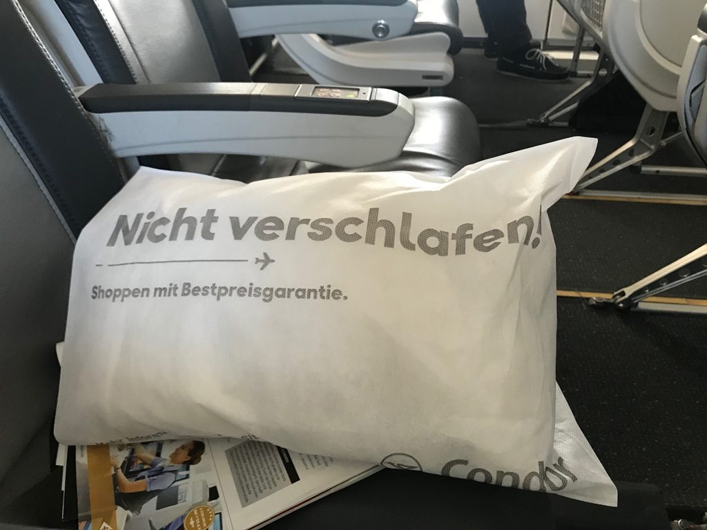 Weiterhin gab es auf meinem recht frühen Flug auch kostenlose Kissen, die durch die Crew verteilt wurden. Auch dies ist leider heutzutage nicht mehr bei allen Airlines Standard.