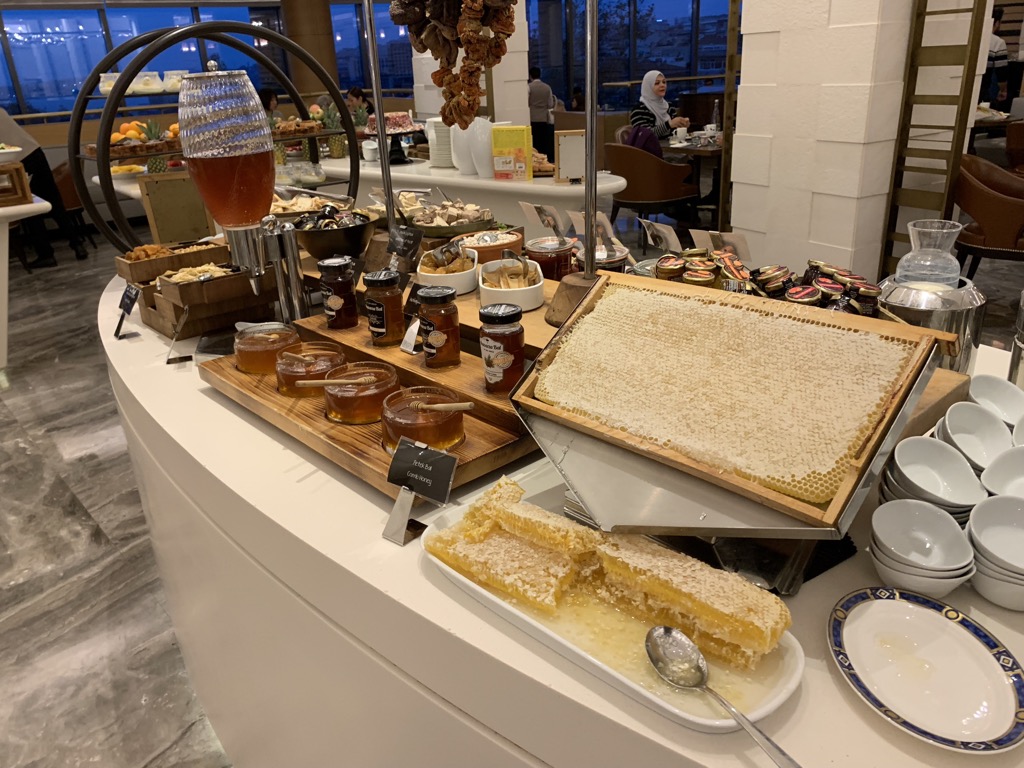 Direkt neben der Executive Lounge befindet sich das Hauptrestaurant des Conrad Istanbul. Hier wird jeden Morgen ein sehr umfangreiches Frühstück serviert, welches für Hilton Gold und Diamond Member kostenlos ist. Wenn Ihr keinen Status bei Hilton habt, empfiehlt sich mindestens eine Zimmerrate mit Frühstück.