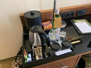 Instant-Kaffee und Tee konnte ich mir mit einem Wasserkocher zubereiten. Kostenloses Mineralwasser gab es hingegen nicht.