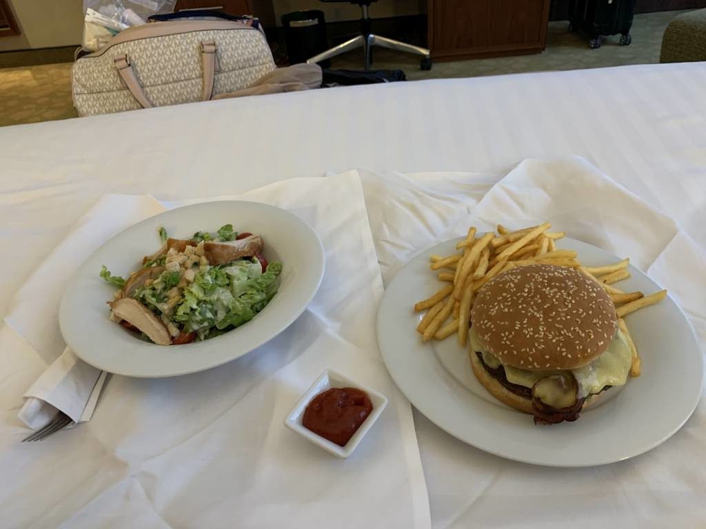 Auf der Speisekarte stehen neben Standards wie Cesars Salad und Hamburgern auch lokale norddeutsche Gerichte, wie Scholle Finkenwerder Art oder Labskaus. Leider war während meines Aufenthalts die Auswahl stark eingeschränkt, so dass es beim Cesars Salad und einem Burger auf d bleiben musste.
