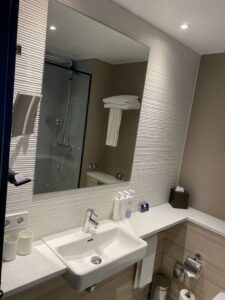 Etwas vorwurfsvoll informierte mich das Duschbad, dass es kein Vielflieger sei. Man unterstellt den Gästen im Crowne Plaza also einen latenten Hang zum Diebstahl. Kann man machen, muss man aber nicht zwingend.