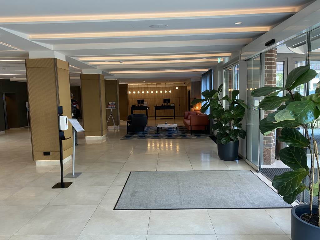 Ich kam etwa 13:30 Uhr im Hotel an. Also noch etwas früh vor der eigentlichen Check-In Zeit um 15 Uhr. Demnach war die Lobby auch noch wenig besucht und ich konnte direkt an einen der drei Schalter der Rezeption. Dort wurde ich freundlich empfangen und mein frühes Auftauchen im Hotel war so gar kein Problem. Nachdem ich kurz meine Kreditkartendaten bestätigte und die Reservierung auf die Firmenadresse ändern ließ, wurde mir auch umgehend mein Zimmerschlüssel ausgehändigt.