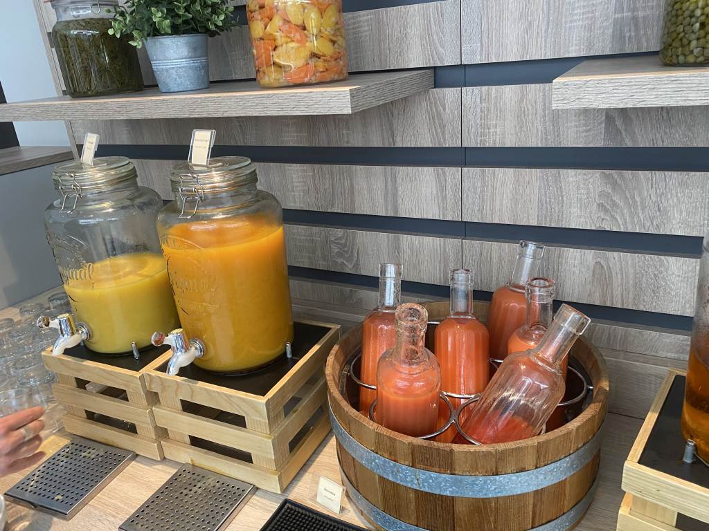 Am Eingang zum Restaurant wurde mein Name und die Zimmernummer abgeglichen und ich zu einem Tisch ganz in der Nähe des Büffets geführt. Kaffee wurde mir zunächst nicht angeboten, daher zog ich mir selbst einen Espresso Macchiato an einem der bereitgestellten Kaffeeautomaten. Zusätzlich versorgte ich mich hier auch mit Säften, wie Orangen- oder Multivitaminsaft. Außerdem stehen auch Smoothies, Tee und Wasser mit Geschmack zur Verfügung.