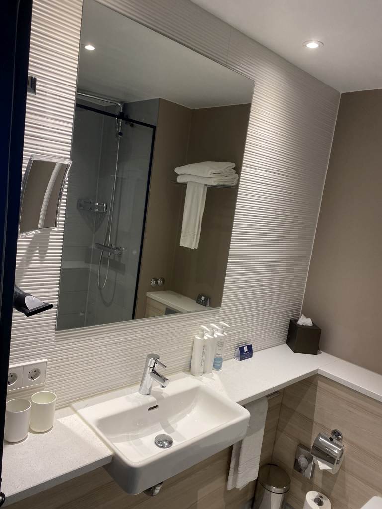 Für mich ein eher unspektakulärer Aufenthalt im Crowne Plaza Hamburg. Das hier Erwartungshaltung und Realität mal wieder auseinanderklafften, lag vermutlich an dem extrem hohen Preisniveau an diesem Wochenende. Wenn ich 260 Euro für ein Hotelzimmer ausgebe, erwarte ich auch etwas mehr. Aber es war halt in Summe ein Crowne Plaza. Dafür sehr modern und scheinbar frisch renoviert. Insbesondere der Aspekt, dass kein Teppich mehr in den Zimmern verlegt ist, hat mir Freude bereitet. Weniger erfreulich war das kleine Bad und die Spuren von Urin auf der Klobrille. Auch die Abwesenheit erweiterter Pflegeprodukte spielten etwas in die Enttäuschung mit rein.