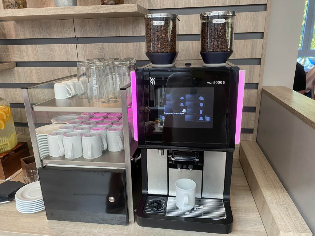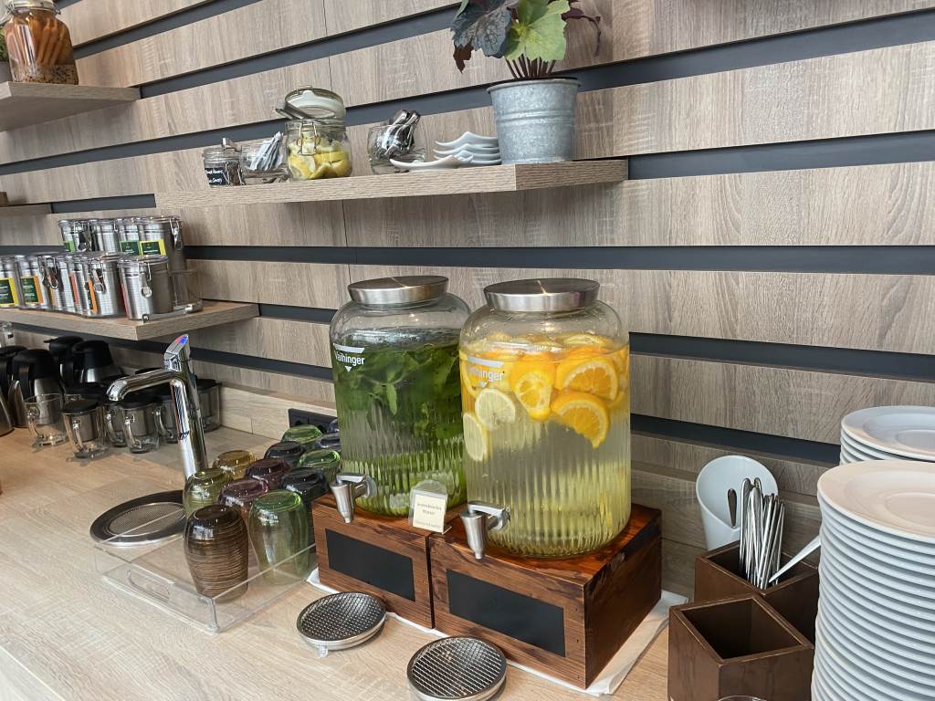 Am Eingang zum Restaurant wurde mein Name und die Zimmernummer abgeglichen und ich zu einem Tisch ganz in der Nähe des Büffets geführt. Kaffee wurde mir zunächst nicht angeboten, daher zog ich mir selbst einen Espresso Macchiato an einem der bereitgestellten Kaffeeautomaten. Zusätzlich versorgte ich mich hier auch mit Säften, wie Orangen- oder Multivitaminsaft. Außerdem stehen auch Smoothies, Tee und Wasser mit Geschmack zur Verfügung.