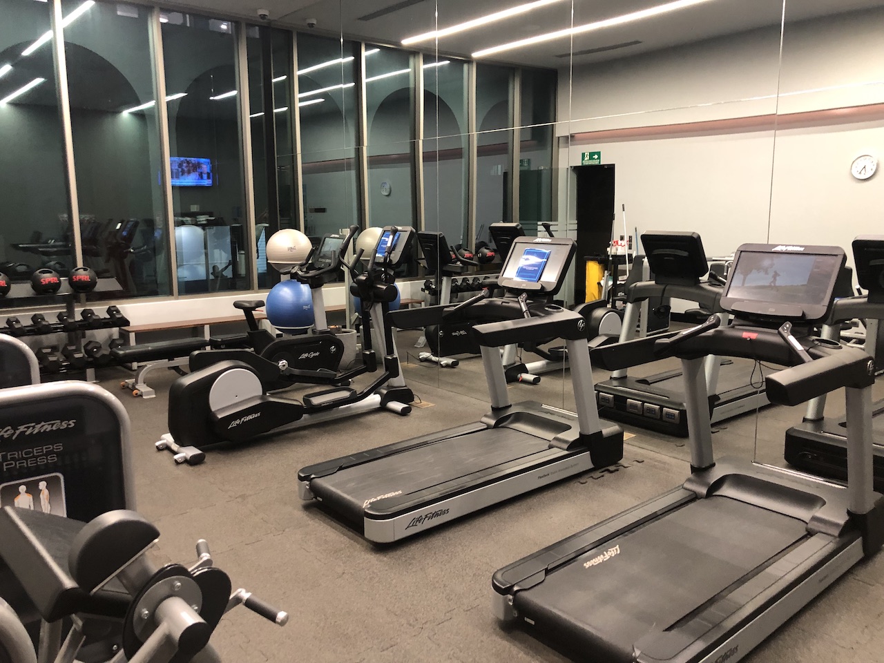 Neben Rezeption, Bar und Restaurant findet man in der fünften Etage auch ein Fitnessstudio.