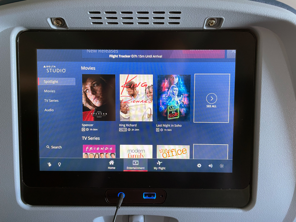 Delta verteilt auch gratis Kopfhörer, damit man Filme genießen kann. Dabei sind diese ausreichend gut, sie auch auf anderen Flügen einzusetzen. Mit Noise Cancelling Kopfhörern namhafter Hersteller können sie jedoch nicht mithalten.