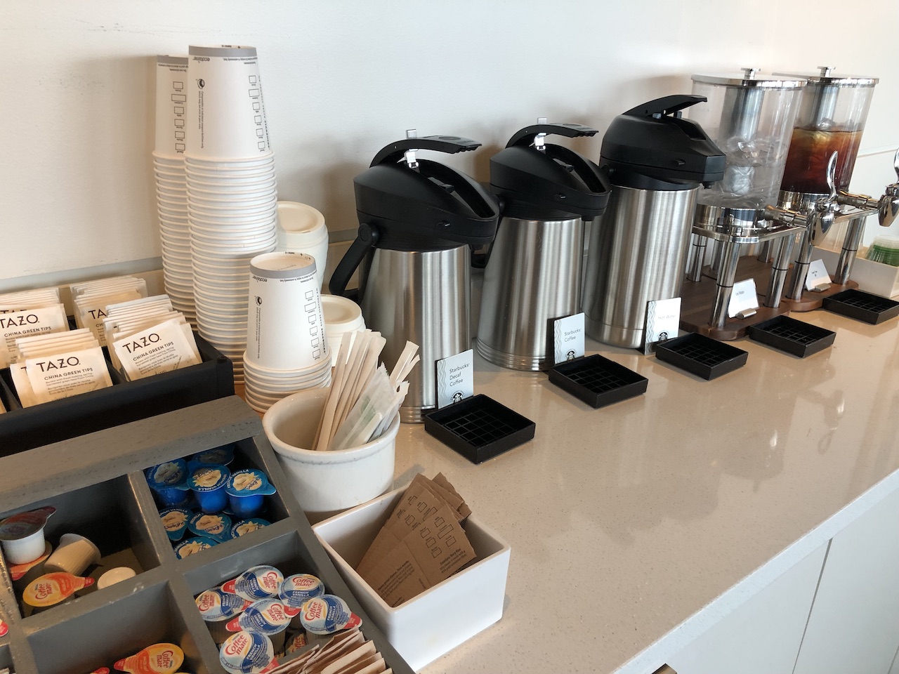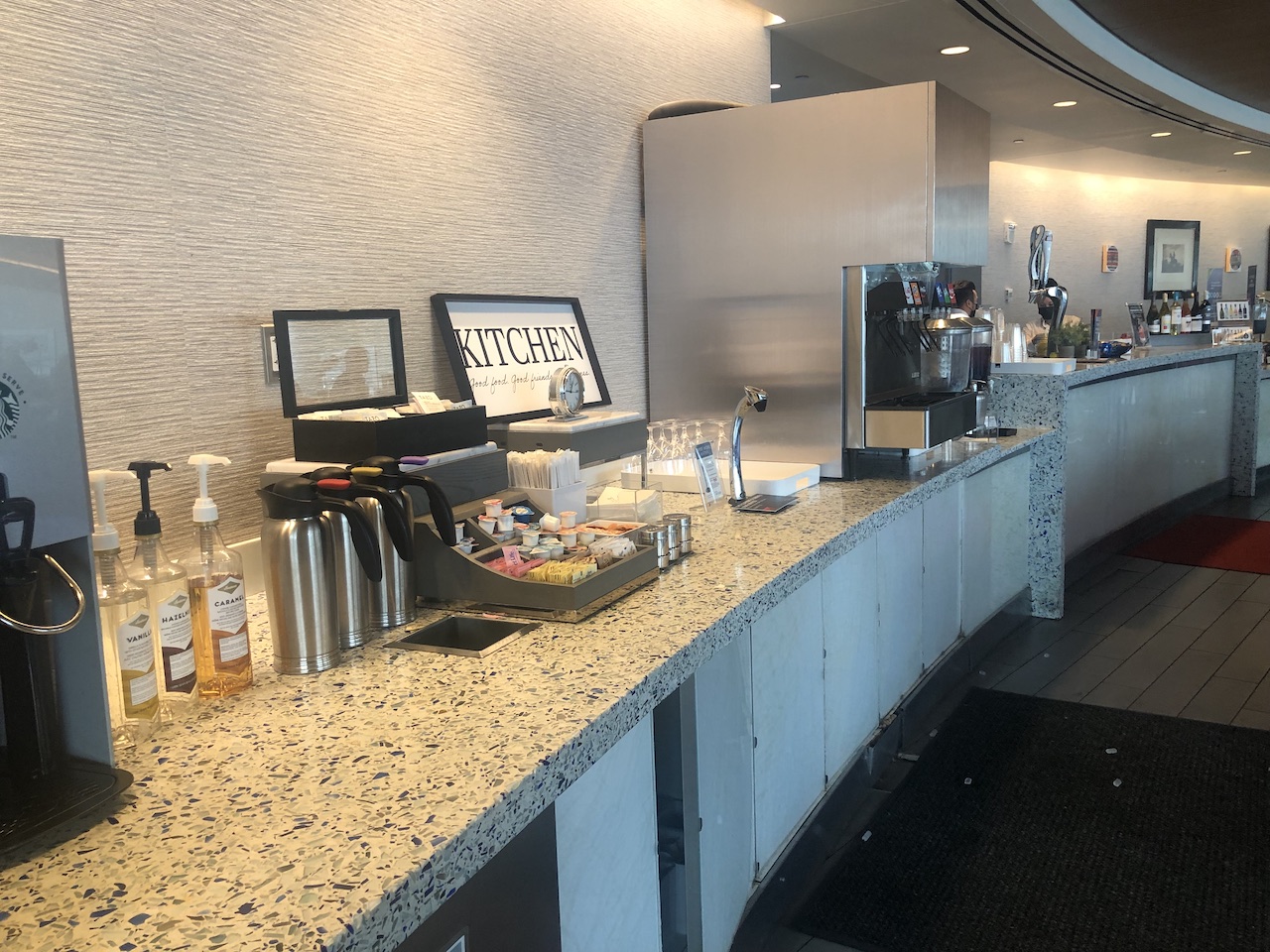 Am Eingang wurden unsere Bordkarten gescannt, mein temporärer Gold Status hat seltsamerweise für Fragen und Verwirrung gesorgt. Delta bietet eine Challenge an und matcht den Vielfliegerstatus aus anderen Programmen. Wir wurden währenddessen gefragt ob wir eine Kreditkarte hätten, die den Zugang gestattet und haben dann die AMEX genutzt. Wie jede Airline in den USA bietet Delta mehrere Karten an, die die Lounges als Benefit beinhalten.