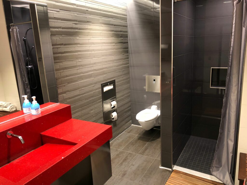 Besucher dürfen auch die geräumigen Duschen nutzen und sich vor oder nach einem Flug erfrischen.