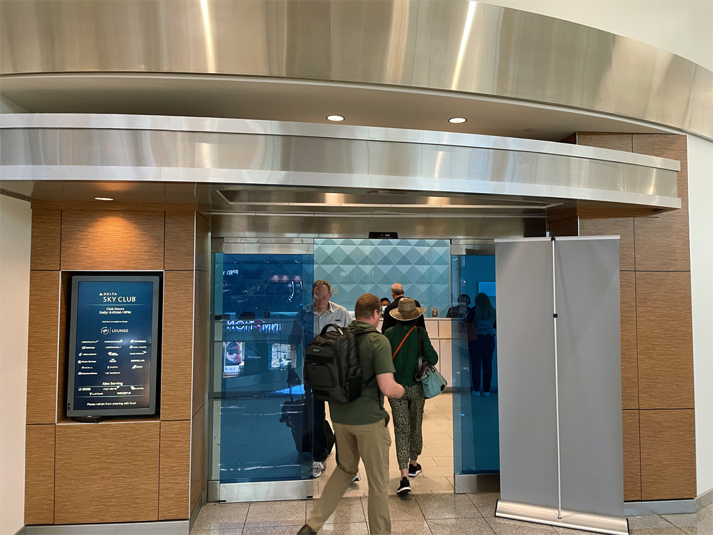 Der Delta Skyclub befindet sich direkt an den Eingängen zum gesicherten Bereich des Terminals. Dabei ist es unerheblich, ob ihr mit dem People Mover im Terminal ankommt oder im internationalen Terminal durch die Sicherheitskontrolle geht. Die Lounge liegt im ersten OG und ist per Treppe, Rolltreppe und Aufzug zu erreichen.