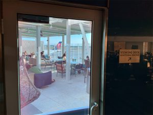 Das Highlight der Lounge ist aus meiner Sicht die Dachterrasse. Hier kann man bequem von Loungemöbeln aus dem Treiben auf dem Vorfeld und an den Gates zusehen. Allerdings darf man nicht vergessen, dass es in Atlanta gerne einmal brüllend heiß wird. Und dann kann der Temperaturunterschied zwischen der maximal heruntergekühlten Lounge und der Luft draußen leicht unangenehm sein – in beiden Richtungen.
